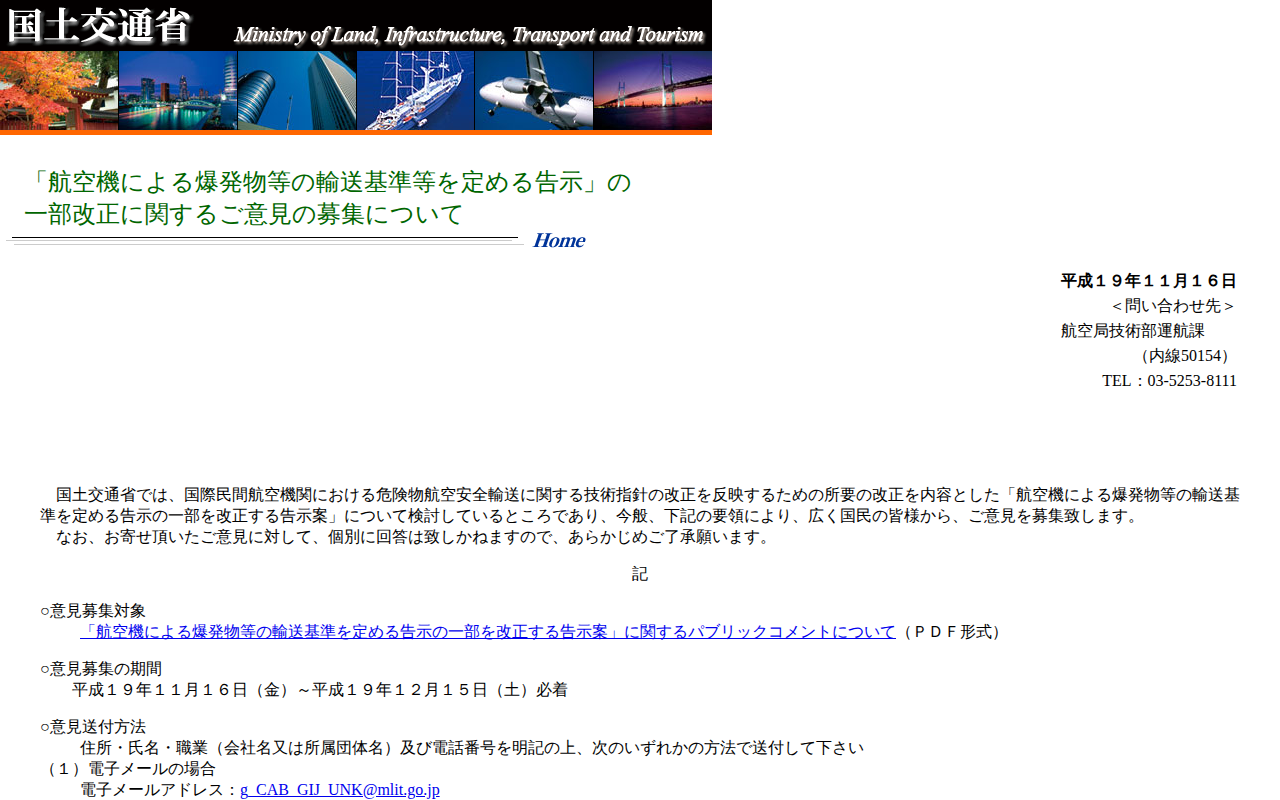 「航空機による爆発物等の輸送基準等を定める告示」の一部改正に関するご意見の募集について