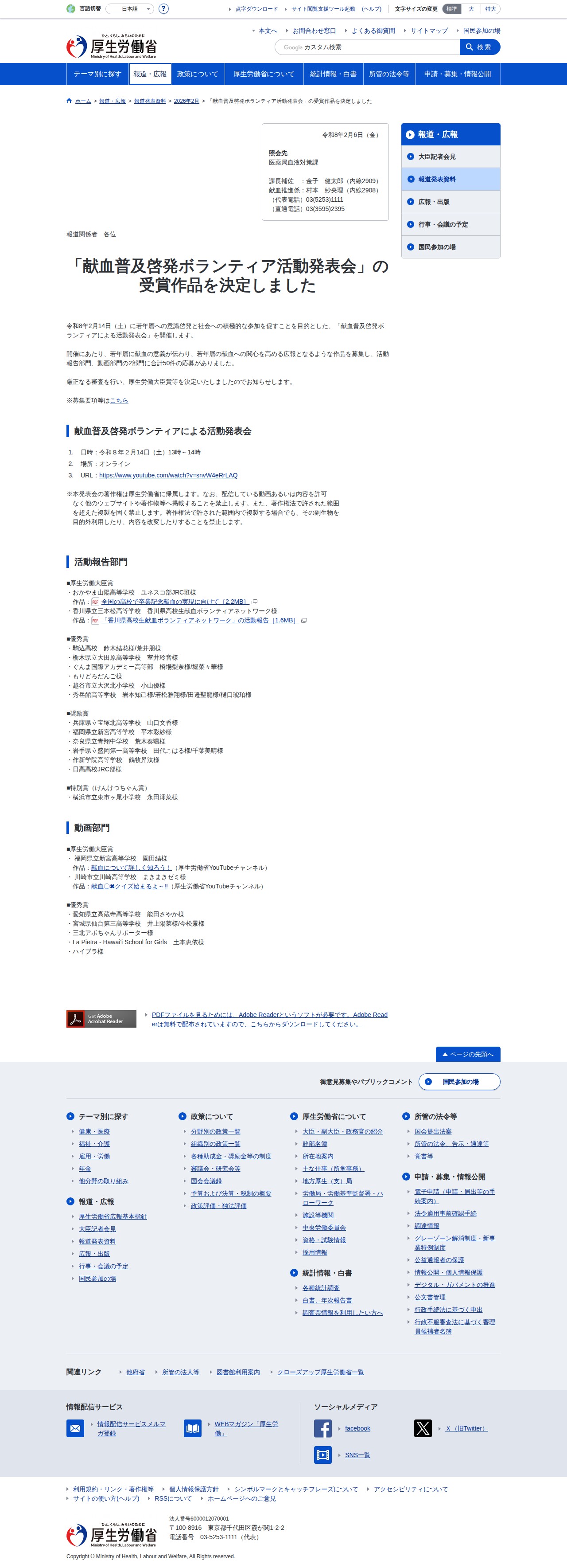 「献血普及啓発ボランティア活動発表会」の受賞作品を決定しました|厚生労働省 - 保存されたスクリーンショット