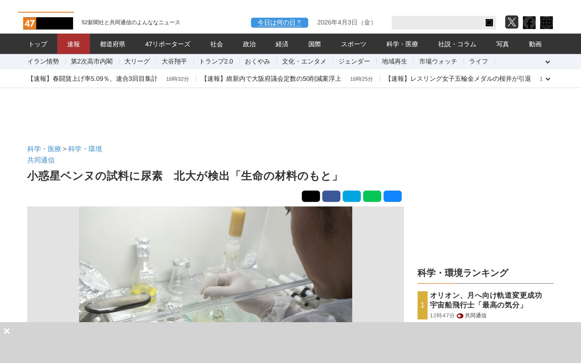 小惑星ベンヌの試料に尿素 北大が検出「生命の材料のもと」|47NEWS(よんななニュース) - 保存されたスクリーンショット