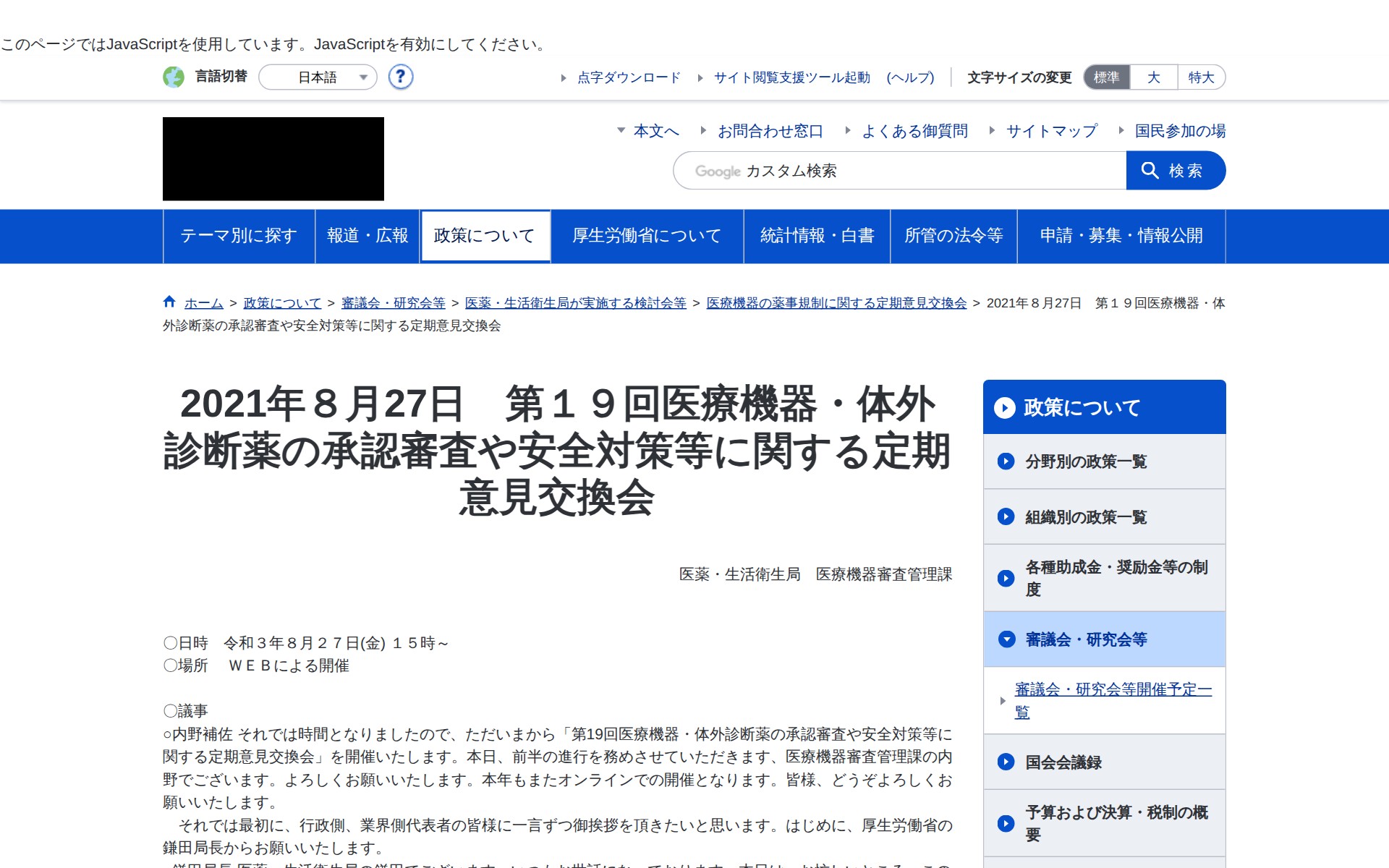 第19回医療機器・体外診断薬の承認審査や安全対策等に関する定期意見交換会 議事録 |厚生労働省