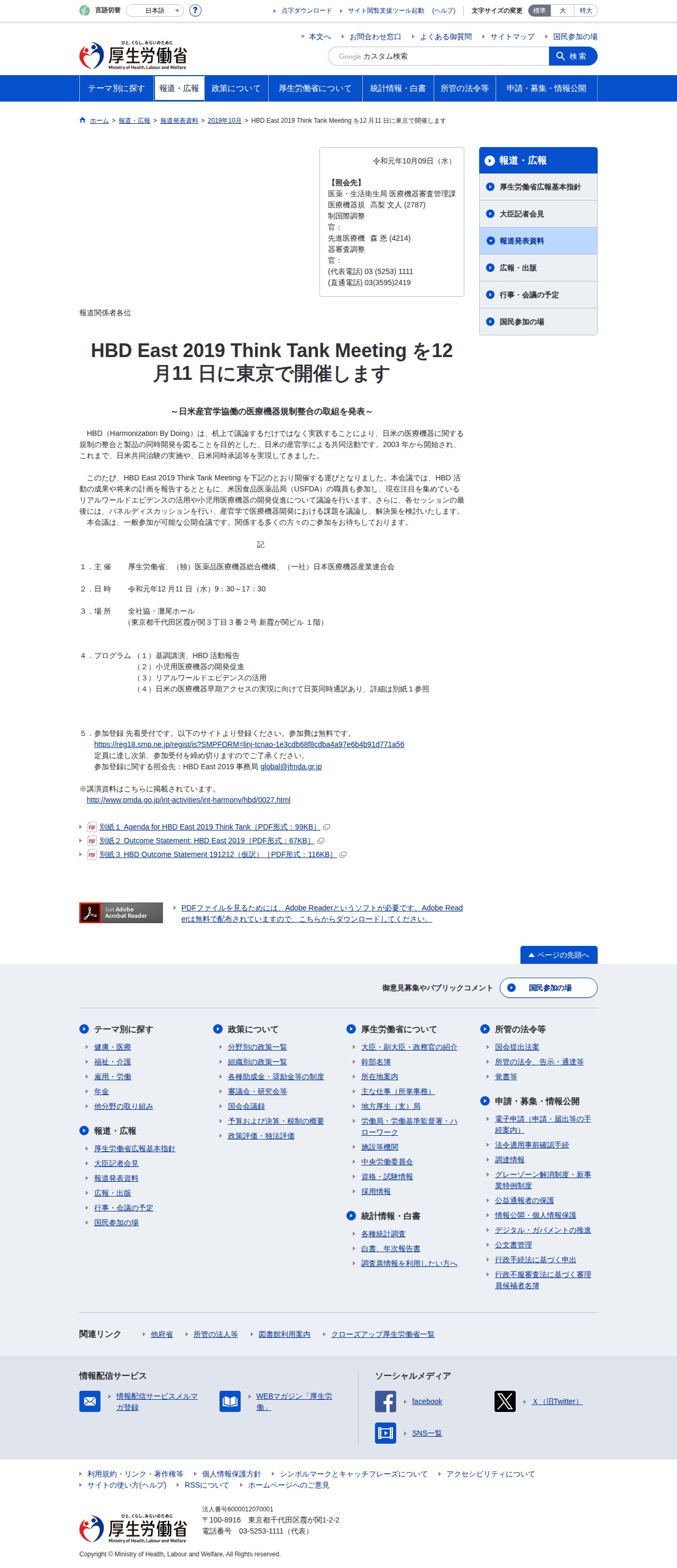 HBD East 2019 Think Tank Meeting を12 月11 日に東京で開催します~日米産官学協働の医療機器規制整合の取組を発表~