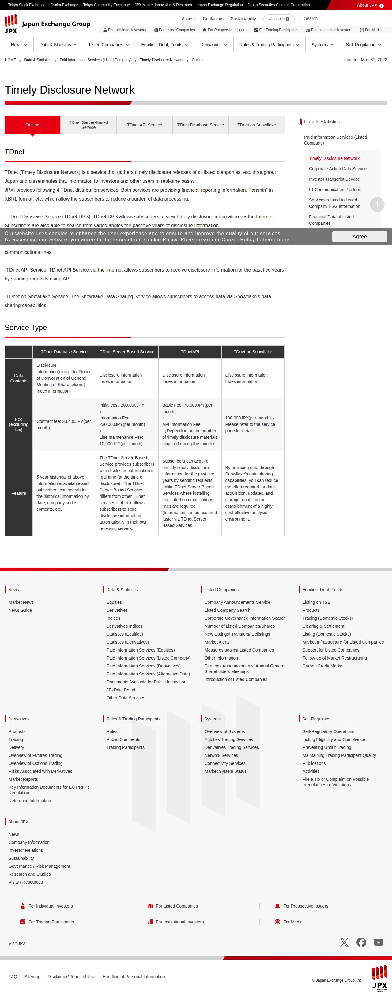 Outline | Timely Disclosure Network | Paid Information Services (Listed Company-related) | Japan Exchange Group