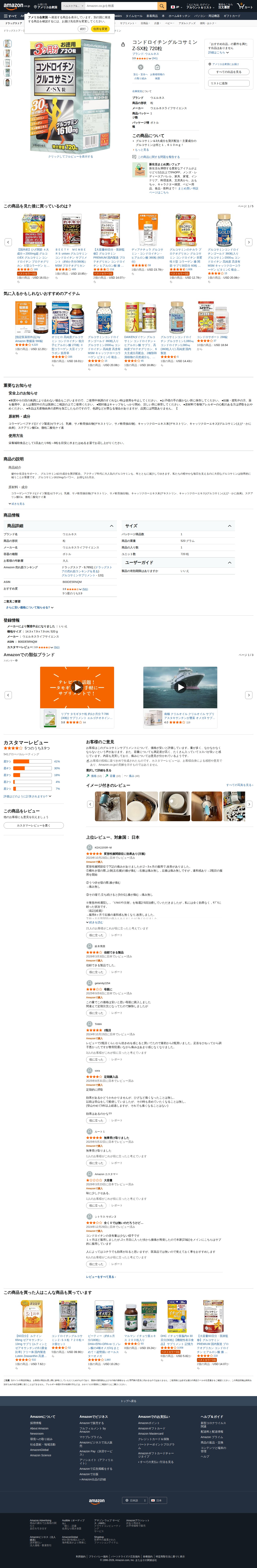 Amazon | コンドロイチングルコサミンZ-SX粒 720粒 | ウエルネス | グルコサミン - 保存されたスクリーンショット