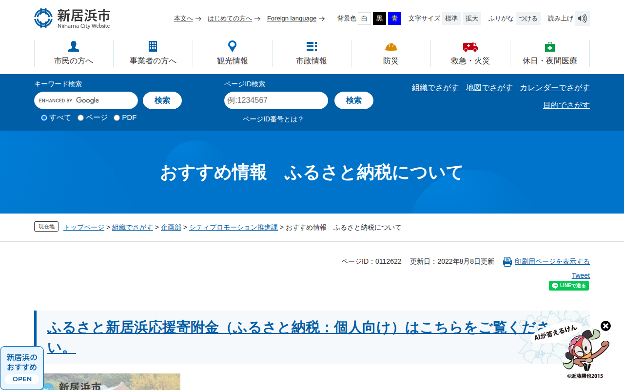 おすすめ情報 ふるさと納税について - 愛媛県新居浜市ホームページ|四国屈指の臨海工業都市
