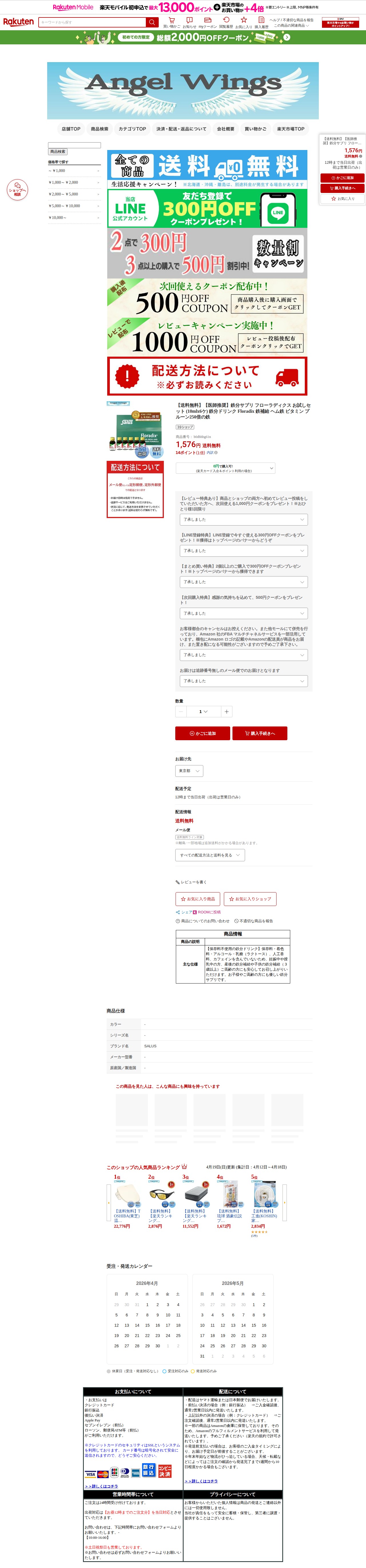 【楽天市場】【送料無料】【医師推奨】鉄分サプリ フローラディクス お試しセット (10mlx6ケ) 鉄分ドリンク Floradix 鉄補給 ヘム鉄 ビタミン プルーン250倍の鉄:Angel Wings - 保存されたスクリーンショット