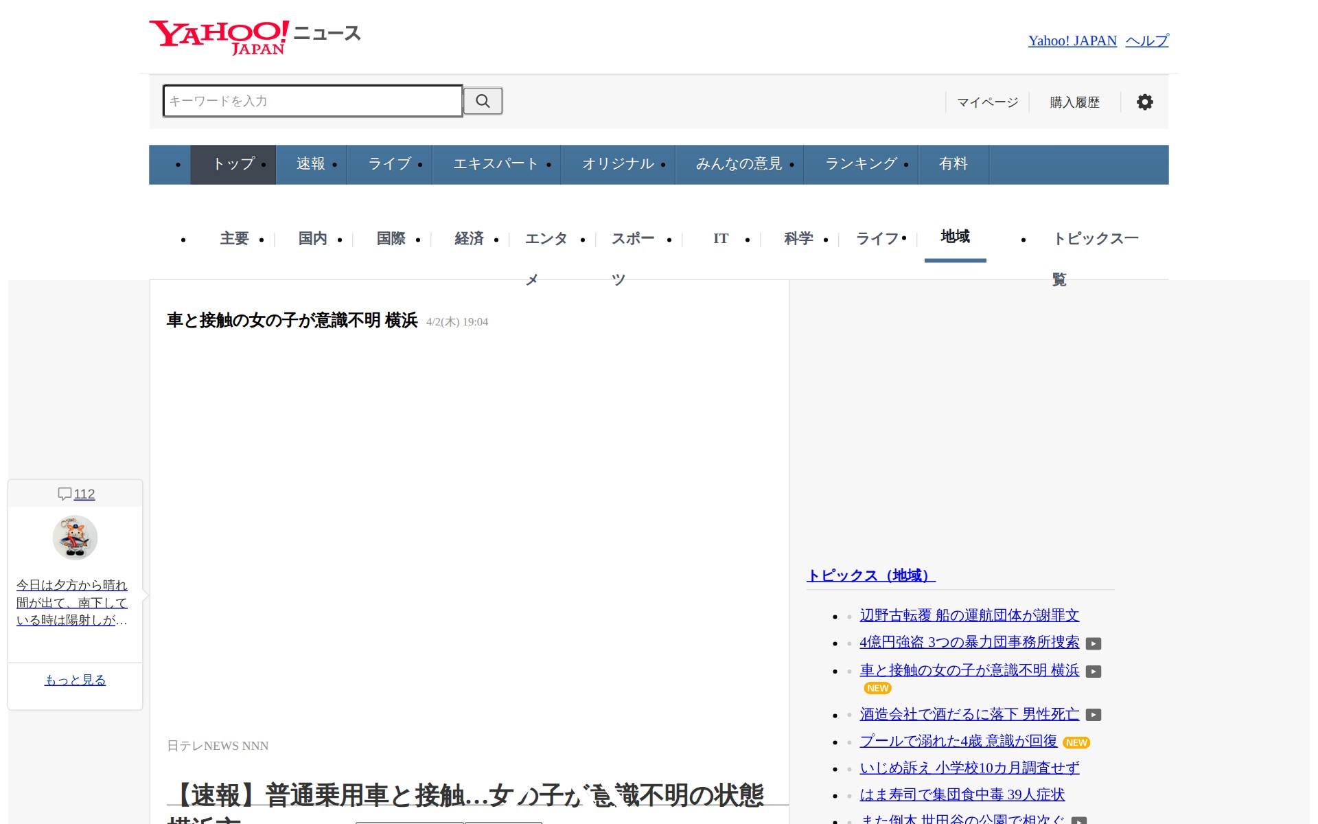 車と接触の女の子が意識不明 横浜 - Yahoo!ニュース