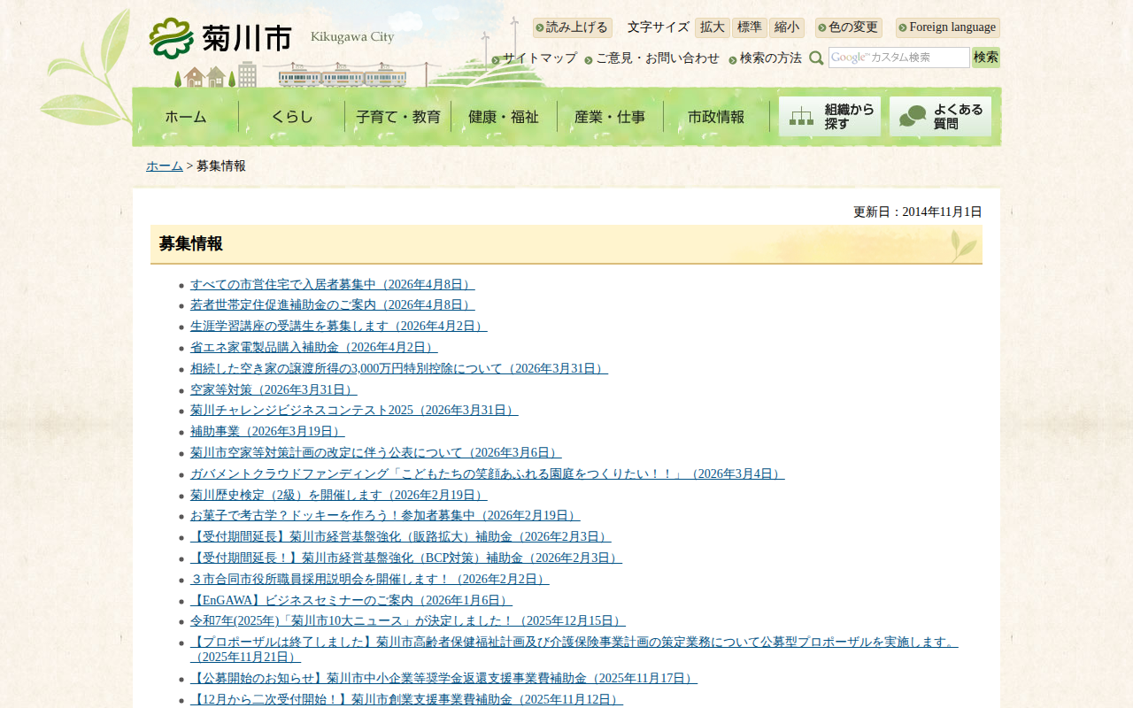 菊川市/募集情報 - 保存されたスクリーンショット