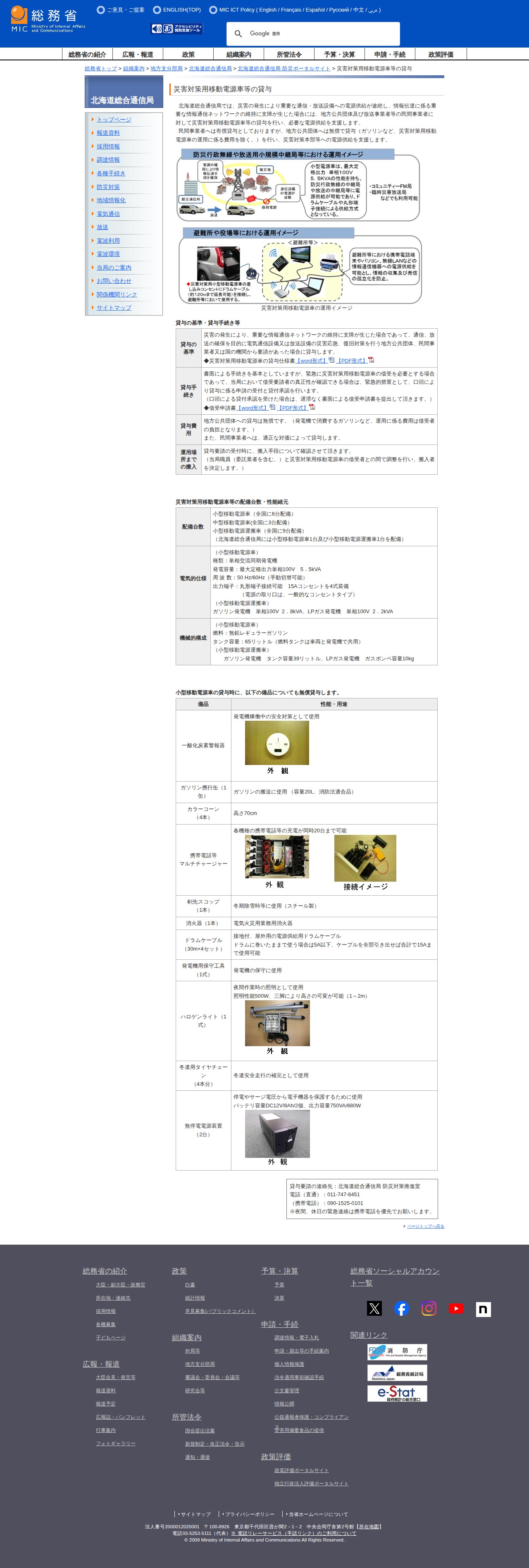 総務省|北海道総合通信局|災害対策用移動電源車等の貸与 - 保存されたスクリーンショット