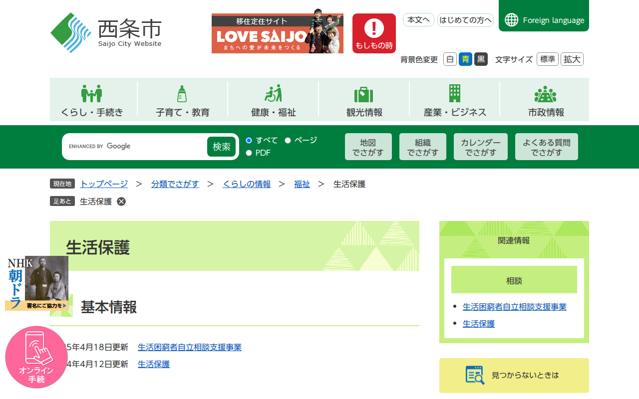 生活保護 - 愛媛県西条市ホームページ - 保存されたスクリーンショット
