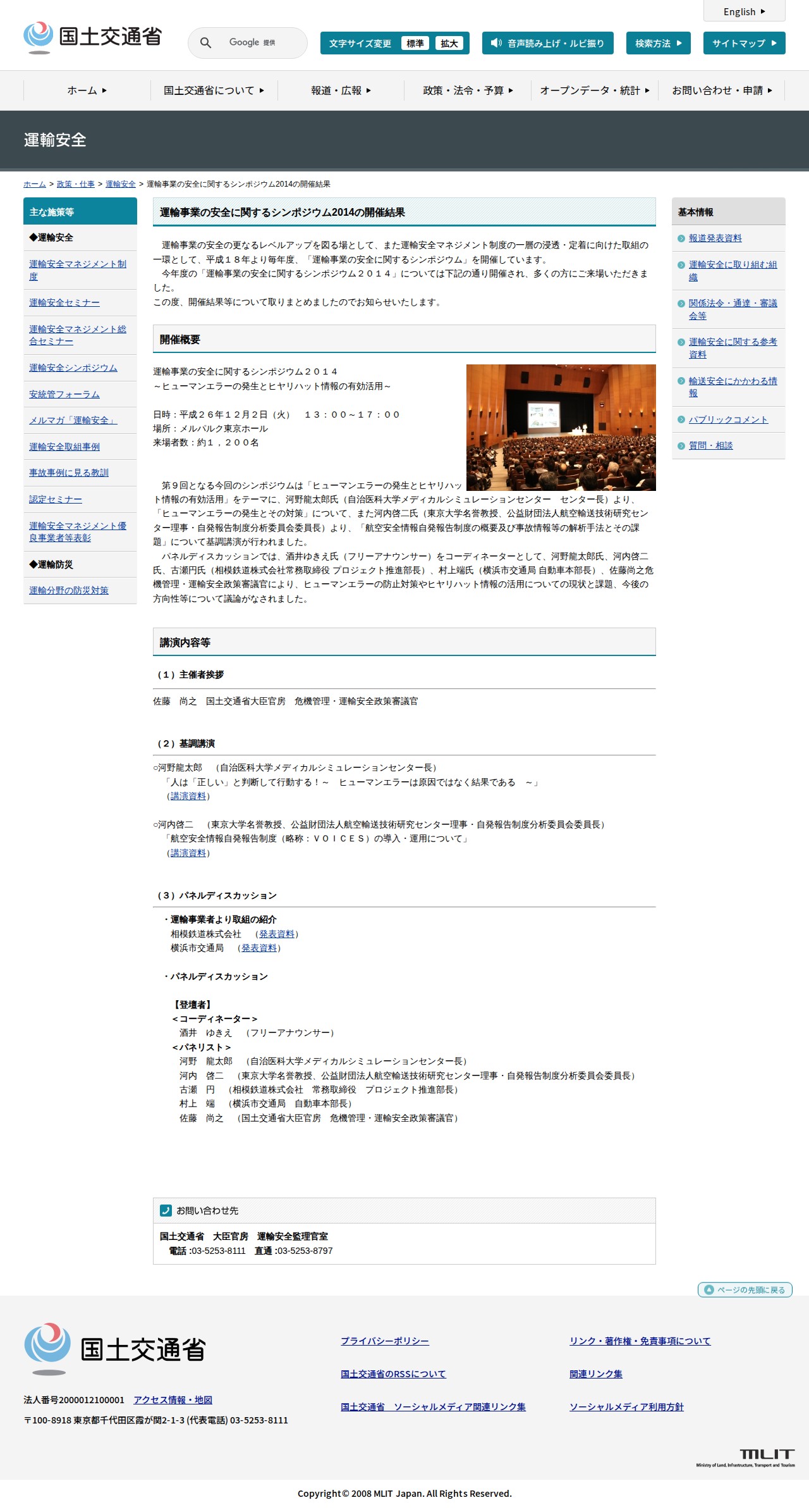 運輸安全:運輸事業の安全に関するシンポジウム2014の開催結果 - 国土交通省 - 保存されたスクリーンショット