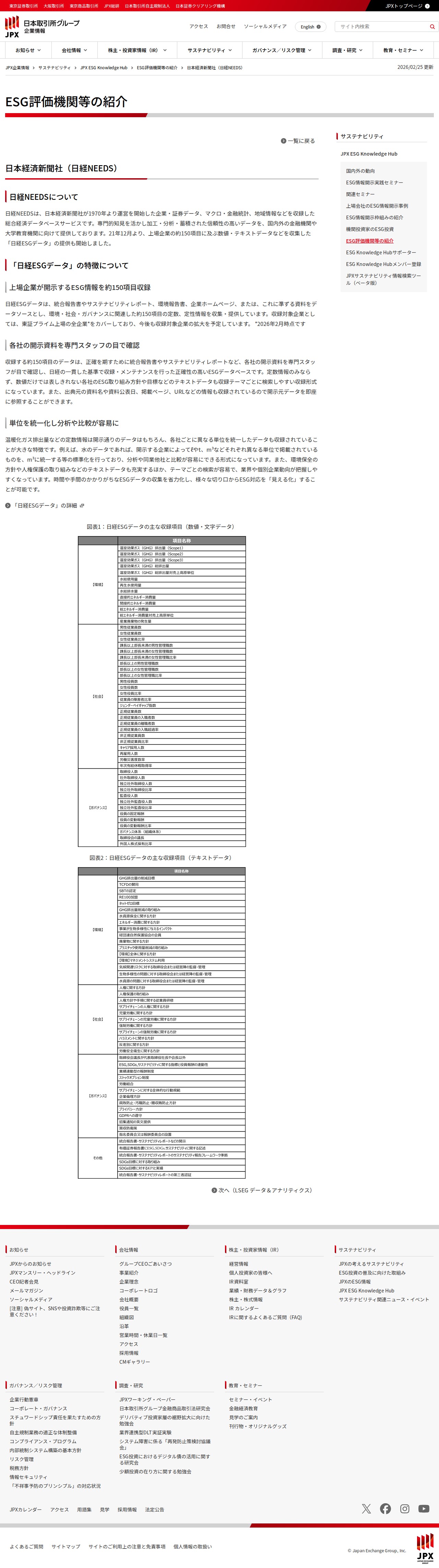 日本経済新聞社(日経NEEDS) | ESG評価機関等の紹介 | JPX ESG Knowledge Hub | 日本取引所グループ