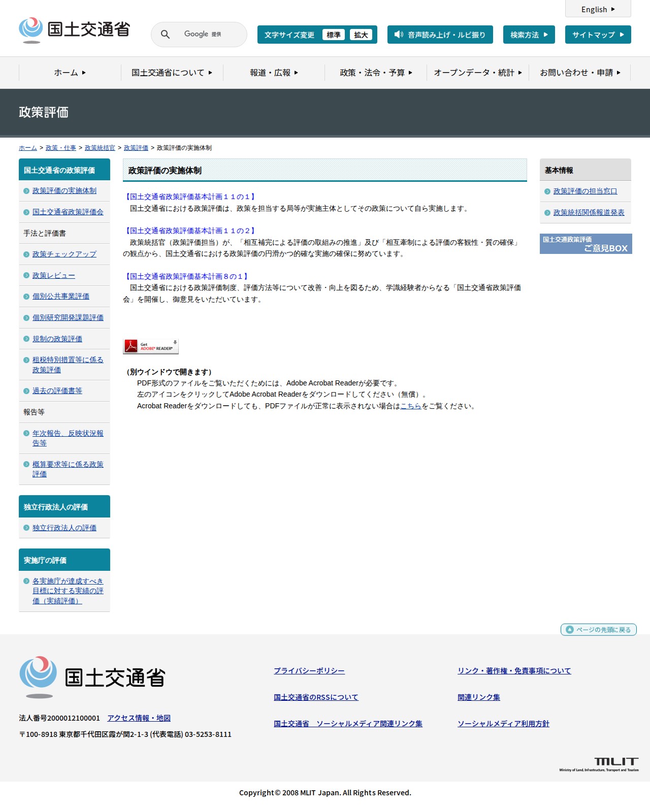 政策評価:政策評価の実施体制 - 国土交通省