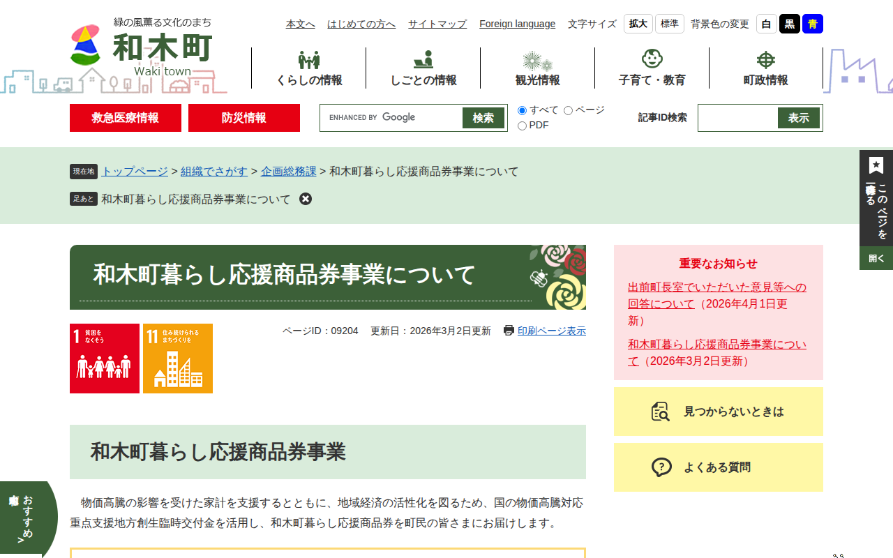 和木町暮らし応援商品券事業について - 和木町ホームページ - 保存されたスクリーンショット