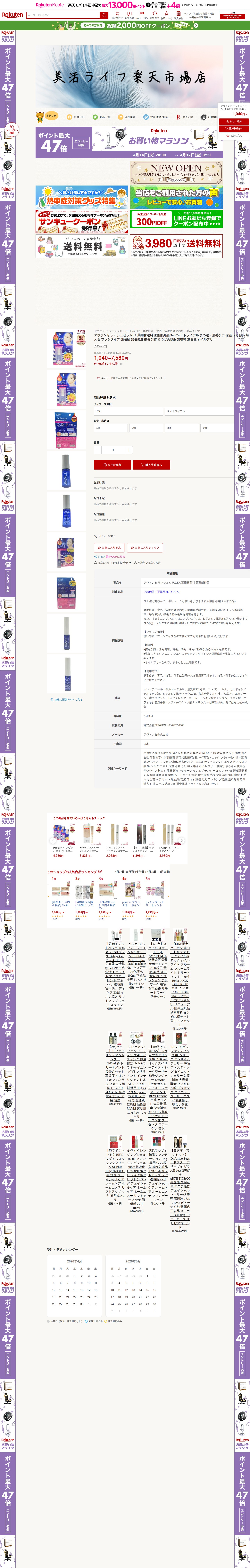このページは、楽天市場で販売されているアヴァンセ ラッシュセラムEXの商品紹介ページです。発毛促進、育毛、抜毛予防に効果のある医薬部外品の薬用育毛料で、3mlと7mlの2サイズが1,040円から7,580円で購入できます。パントテン酸誘導体や感光素などの有効成分を配合し、ニンジンエキスやヒアルロン酸などの保湿成分が毛髪に潤いを与えます。オイルフリーでさらっとした使用感が特徴で、ブラシタイプで初心者にも使いやすい設計となっています。