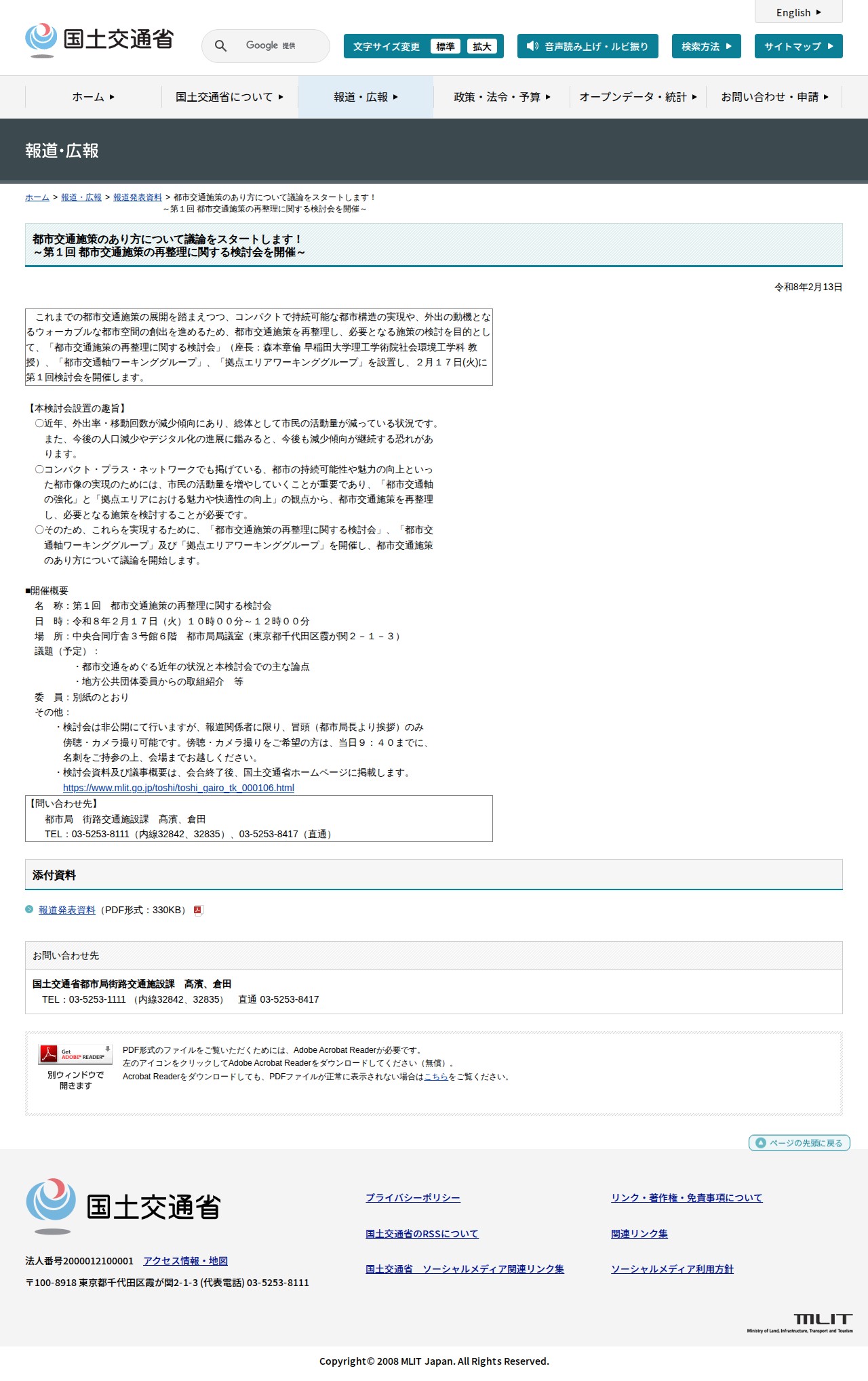 報道発表資料:都市交通施策のあり方について議論をスタートします!<br>~第1回 都市交通施策の再整理に関する検討会を開催~ - 国土交通省 - 保存されたスクリーンショット