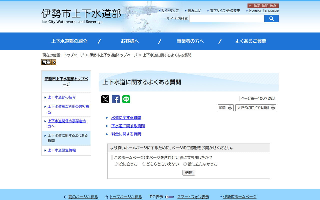 上下水道に関するよくある質問|伊勢市公式ホームページ - 保存されたスクリーンショット