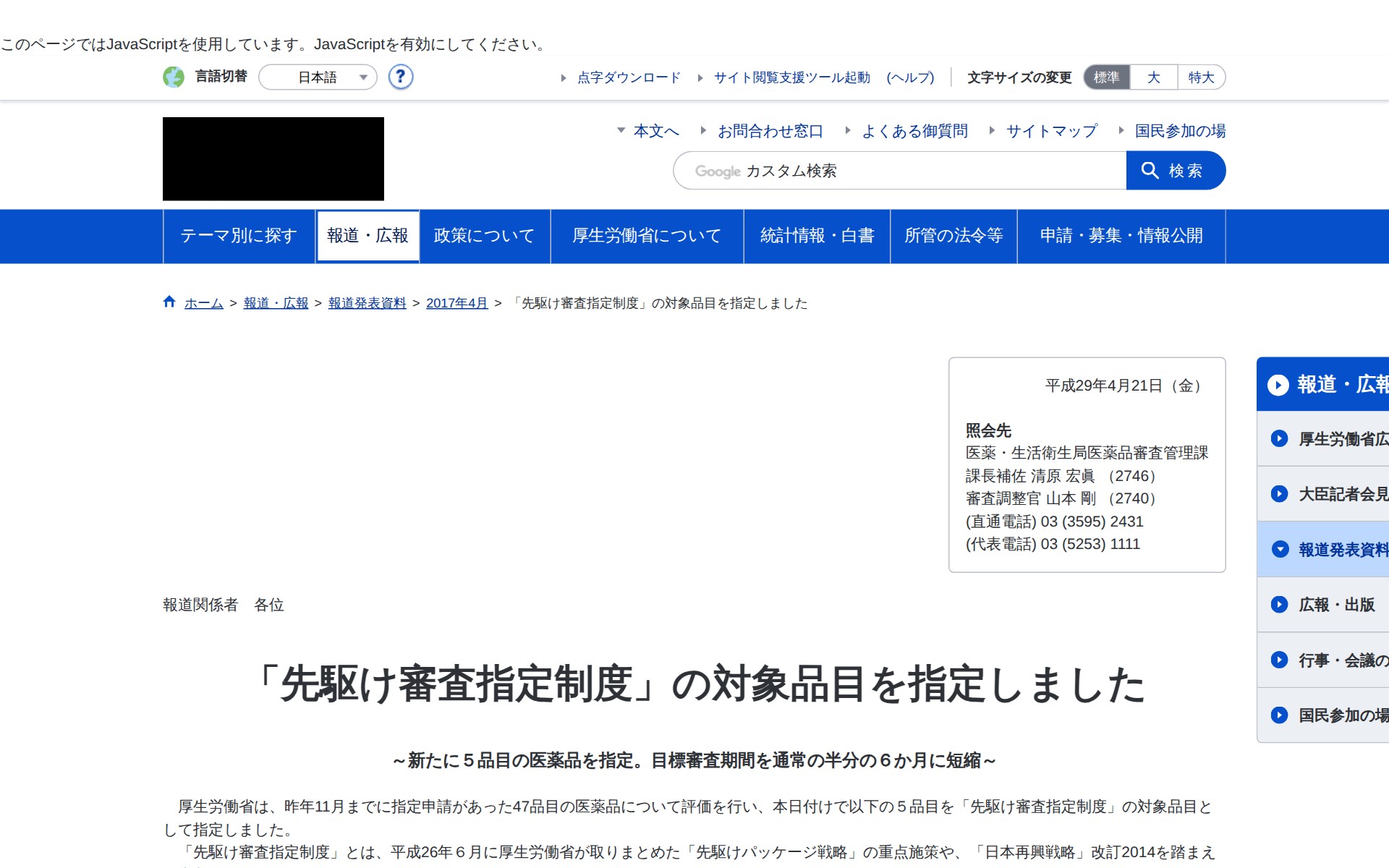 「先駆け審査指定制度」の対象品目を指定しました|厚生労働省