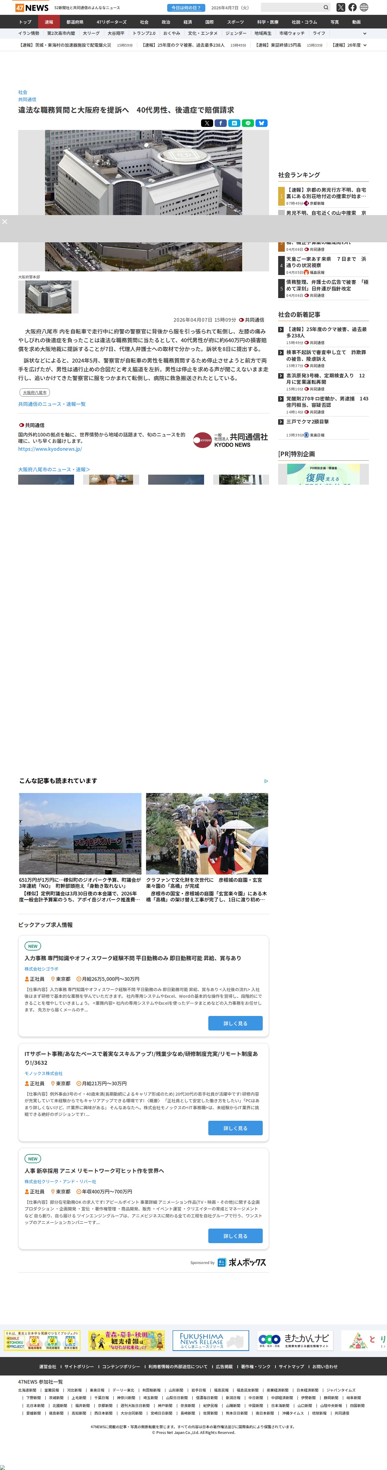 違法な職務質問と大阪府を提訴へ 40代男性、後遺症で賠償請求|47NEWS(よんななニュース)