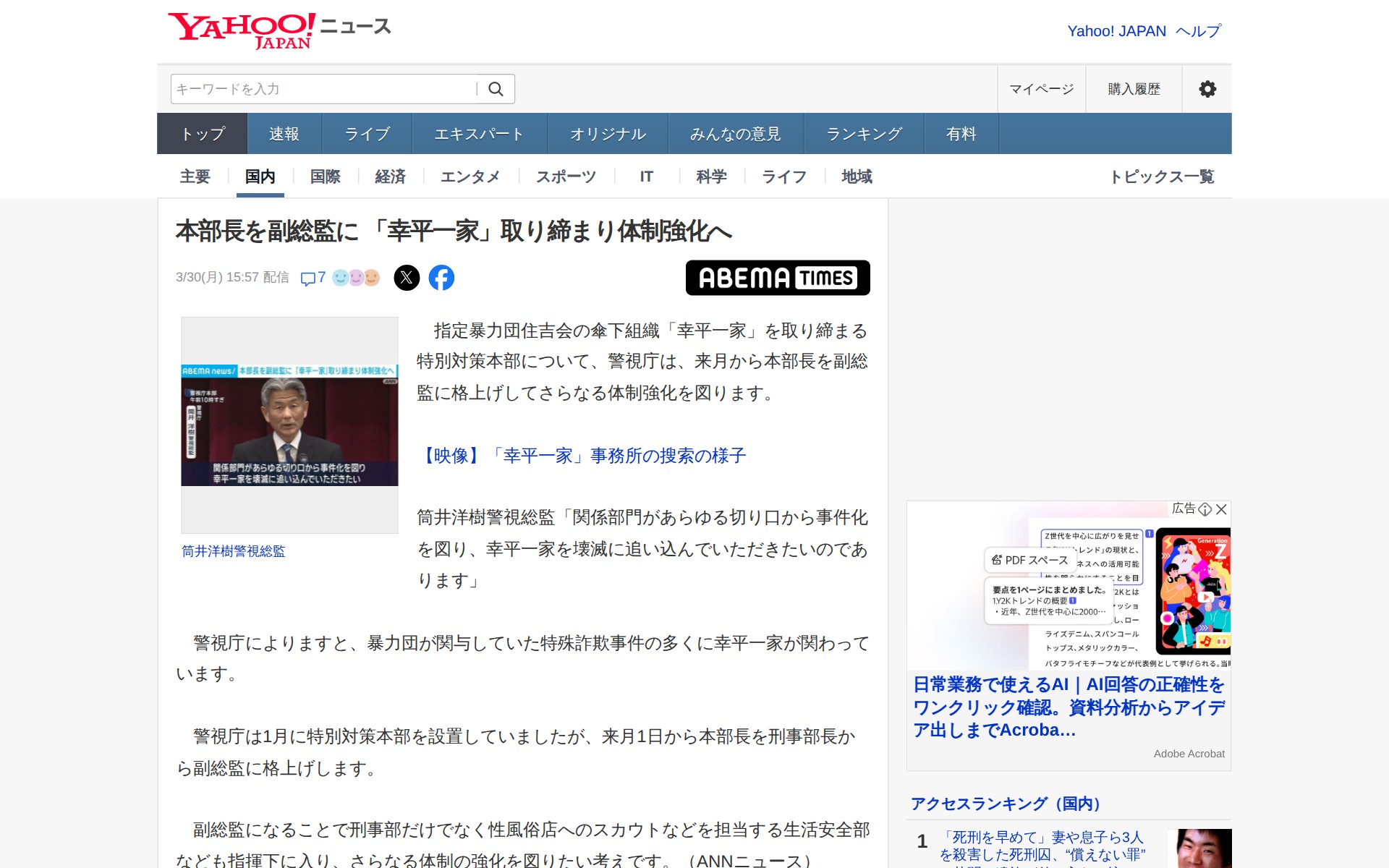 本部長を副総監に 「幸平一家」取り締まり体制強化へ(ABEMA TIMES) - Yahoo!ニュース