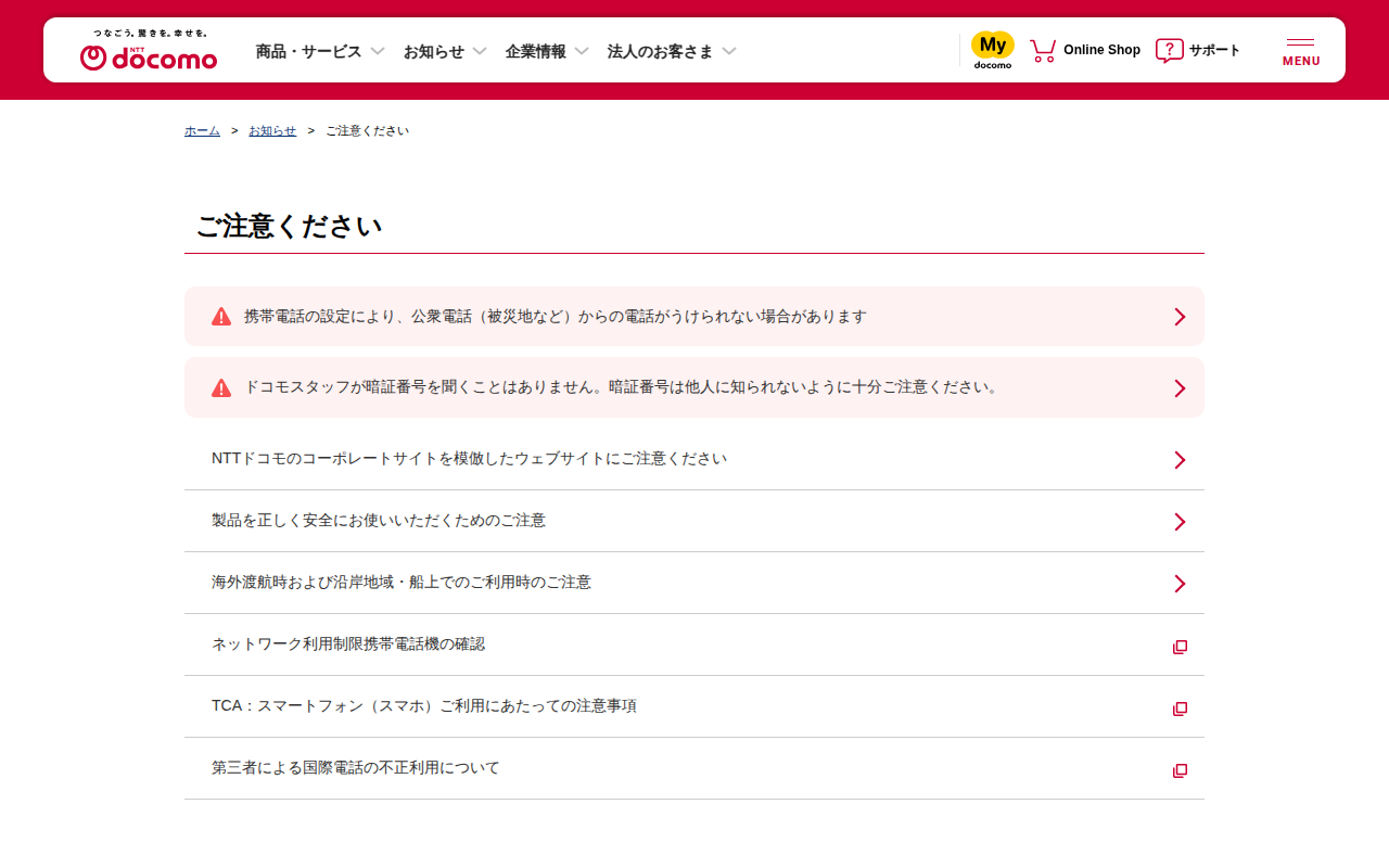 https://www.docomo.ne.jp/info/safety?icid=CRP_INFO_to_CRP_INFO_safety2026年4月12日 11:08 JST•アーカイブページ・viewer・ダウンロードは、この保存版を基準に表示されます。