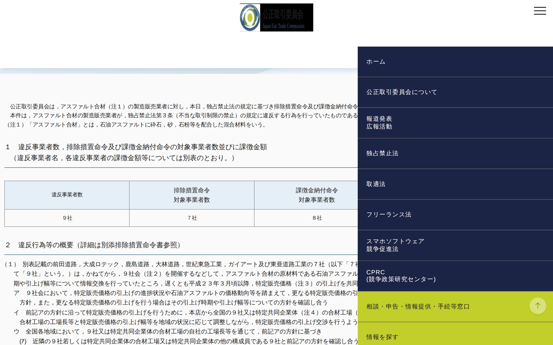 (令和元年7月30日)アスファルト合材の製造販売業者に対する排除措置命令及び課徴金納付命令について | 公正取引委員会 - 保存されたスクリーンショット