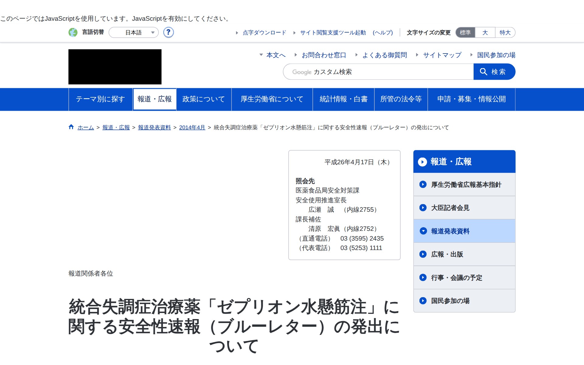 統合失調症治療薬「ゼプリオン水懸筋注」に関する安全性速報(ブルーレター)の発出について|厚生労働省