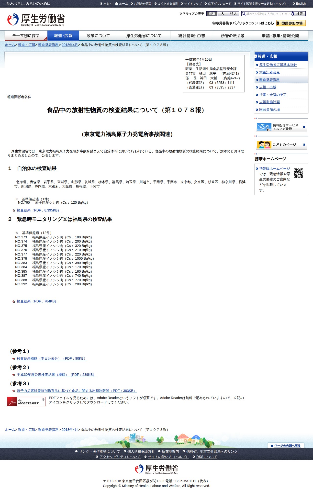 食品中の放射性物質の検査結果について(第1078報) |報道発表資料|厚生労働省