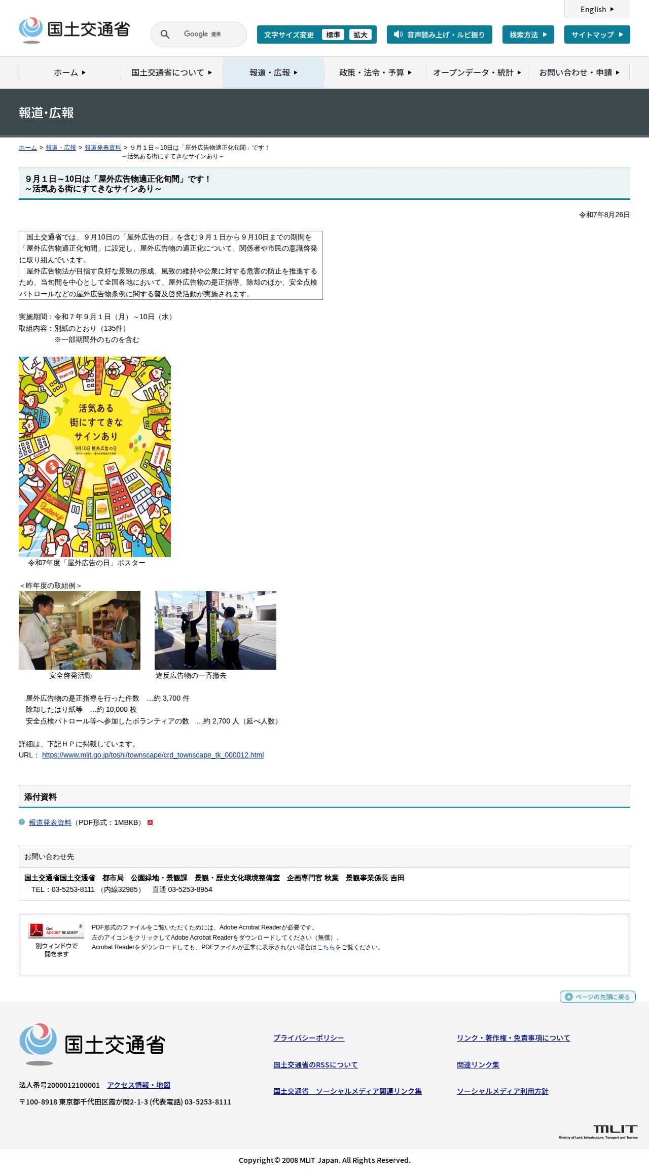 報道発表資料:9月1日~10日は「屋外広告物適正化旬間」です!<br>~活気ある街にすてきなサインあり~ - 国土交通省 - 保存されたスクリーンショット