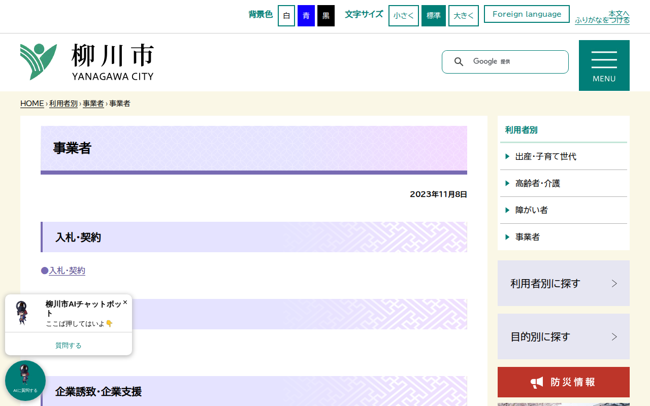 https://www.city.yanagawa.fukuoka.jp/riyoushabetsu/jigyousha/ijgyousha.html2026年4月9日 01:21 JST•アーカイブページ・viewer・ダウンロードは、この保存版を基準に表示されます。