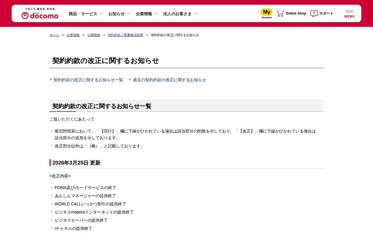 契約約款の改正に関するお知らせ | 企業情報 | NTTドコモ