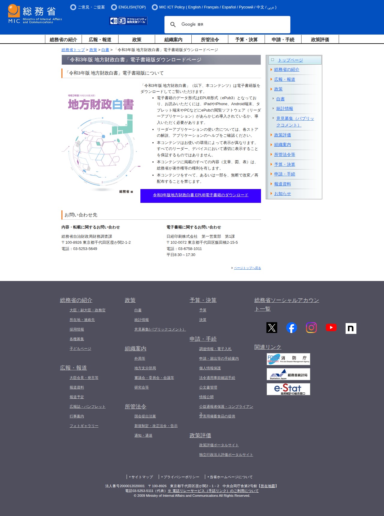 総務省|「令和3年版 地方財政白書」電子書籍版ダウンロードページ
