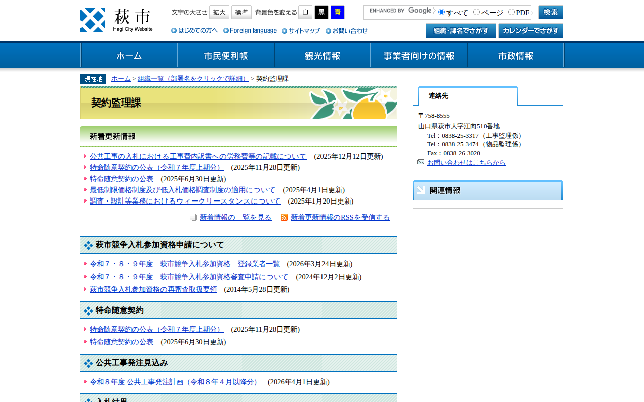 契約監理課 - 萩市ホームページ - 保存されたスクリーンショット
