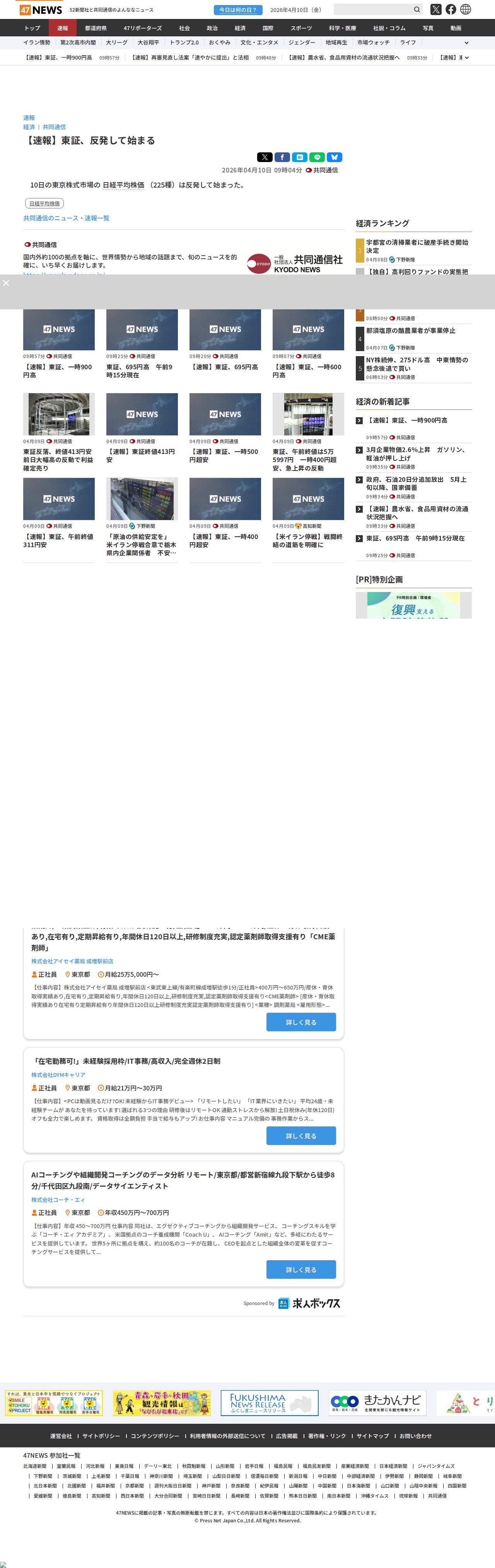【速報】東証、反発して始まる|47NEWS(よんななニュース) - 保存されたスクリーンショット