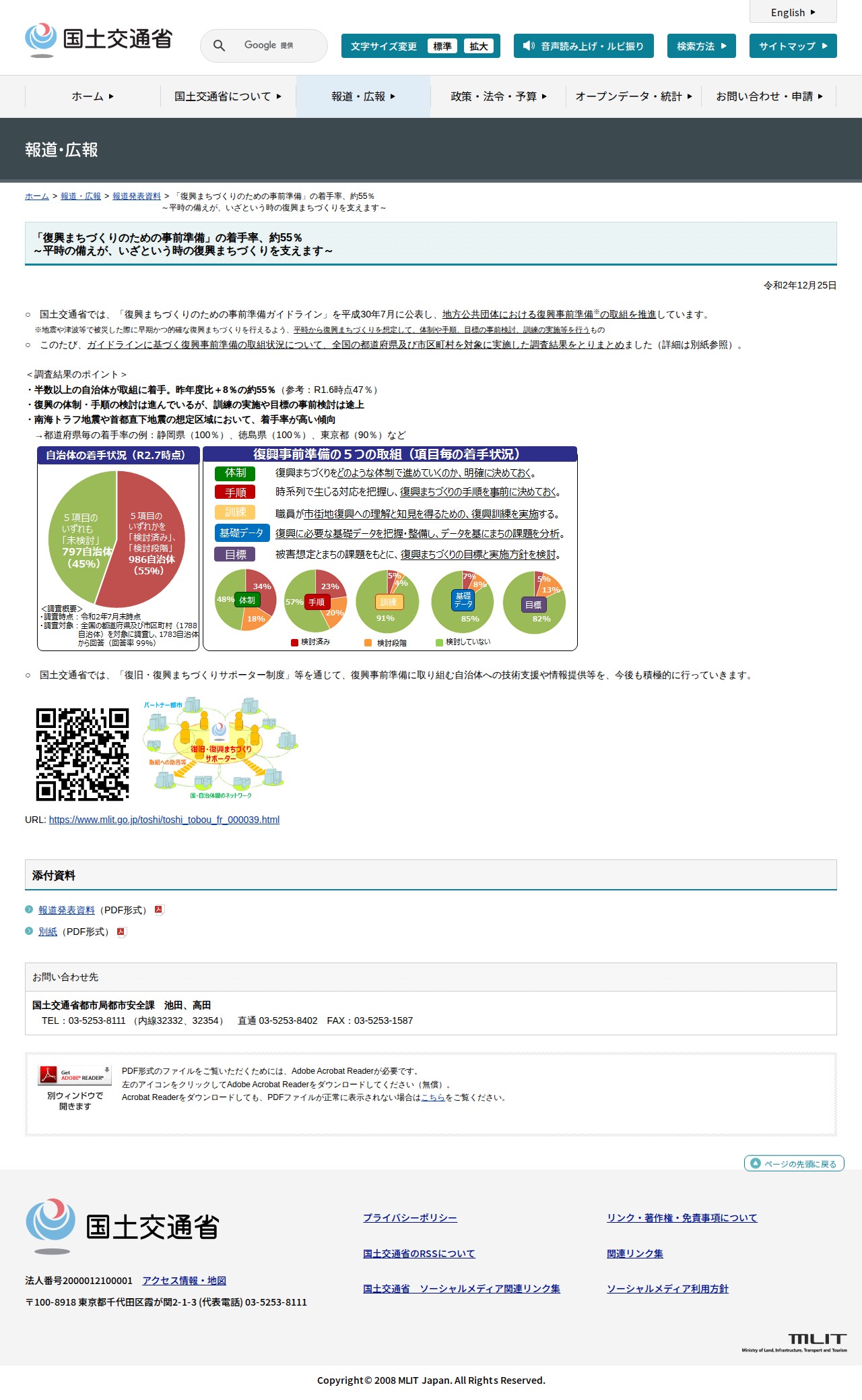 報道発表資料:「復興まちづくりのための事前準備」の着手率、約55%<br>~平時の備えが、いざという時の復興まちづくりを支えます~ - 国土交通省 - 保存されたスクリーンショット