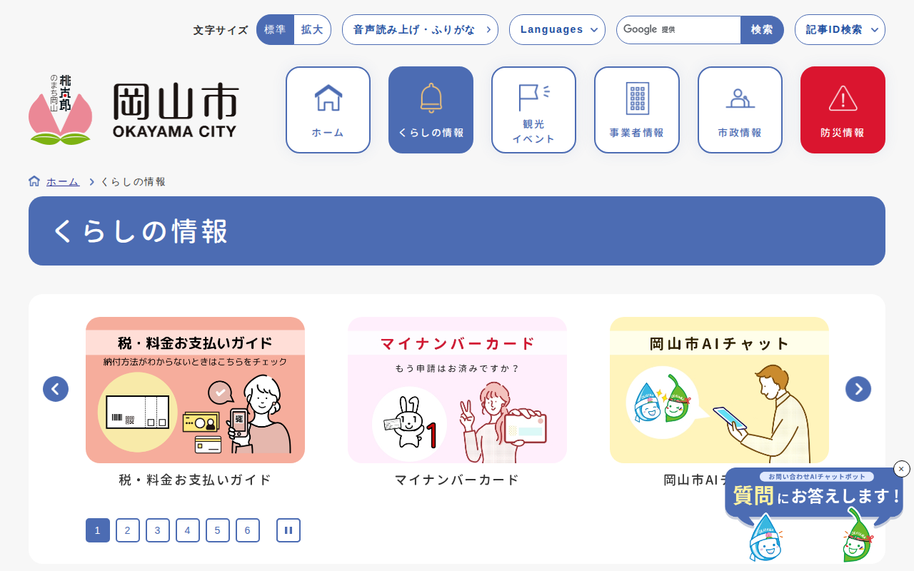 https://www.city.okayama.jp/kurashi/index.html2026年4月9日 07:09 JST•アーカイブページ・viewer・ダウンロードは、この保存版を基準に表示されます。