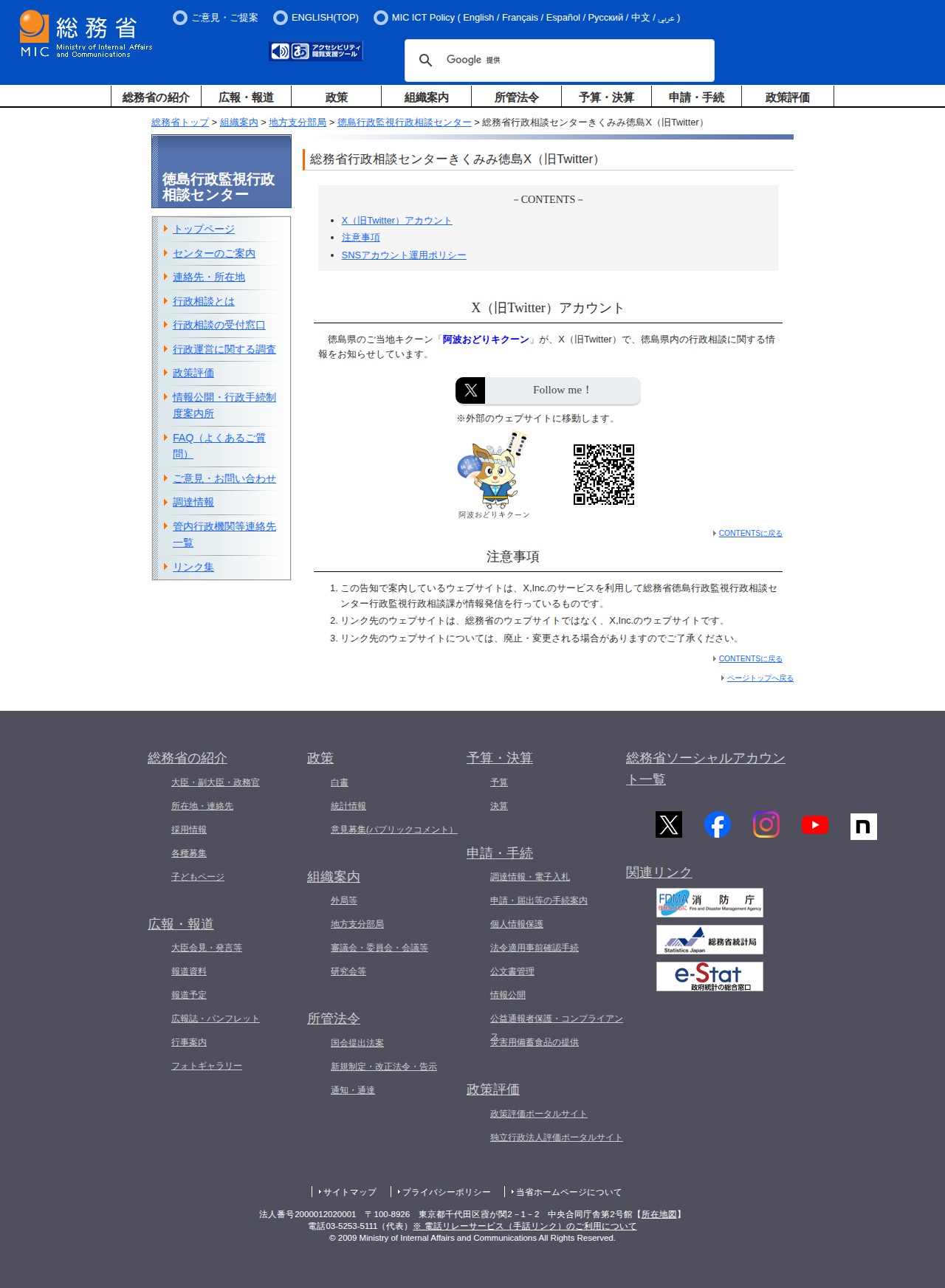 総務省|徳島行政監視行政相談センター|総務省行政相談センターきくみみ徳島X(旧Twitter)