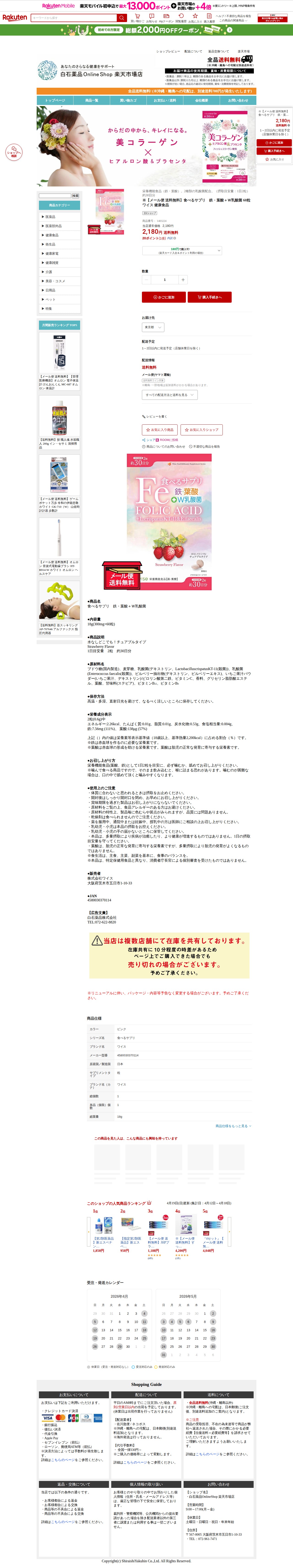 【楽天市場】※【メール便 送料無料】食べるサプリ 鉄・葉酸+W乳酸菌 60粒 ワイス 健康食品:白石薬品Online Shop 楽天市場店 - 保存されたスクリーンショット
