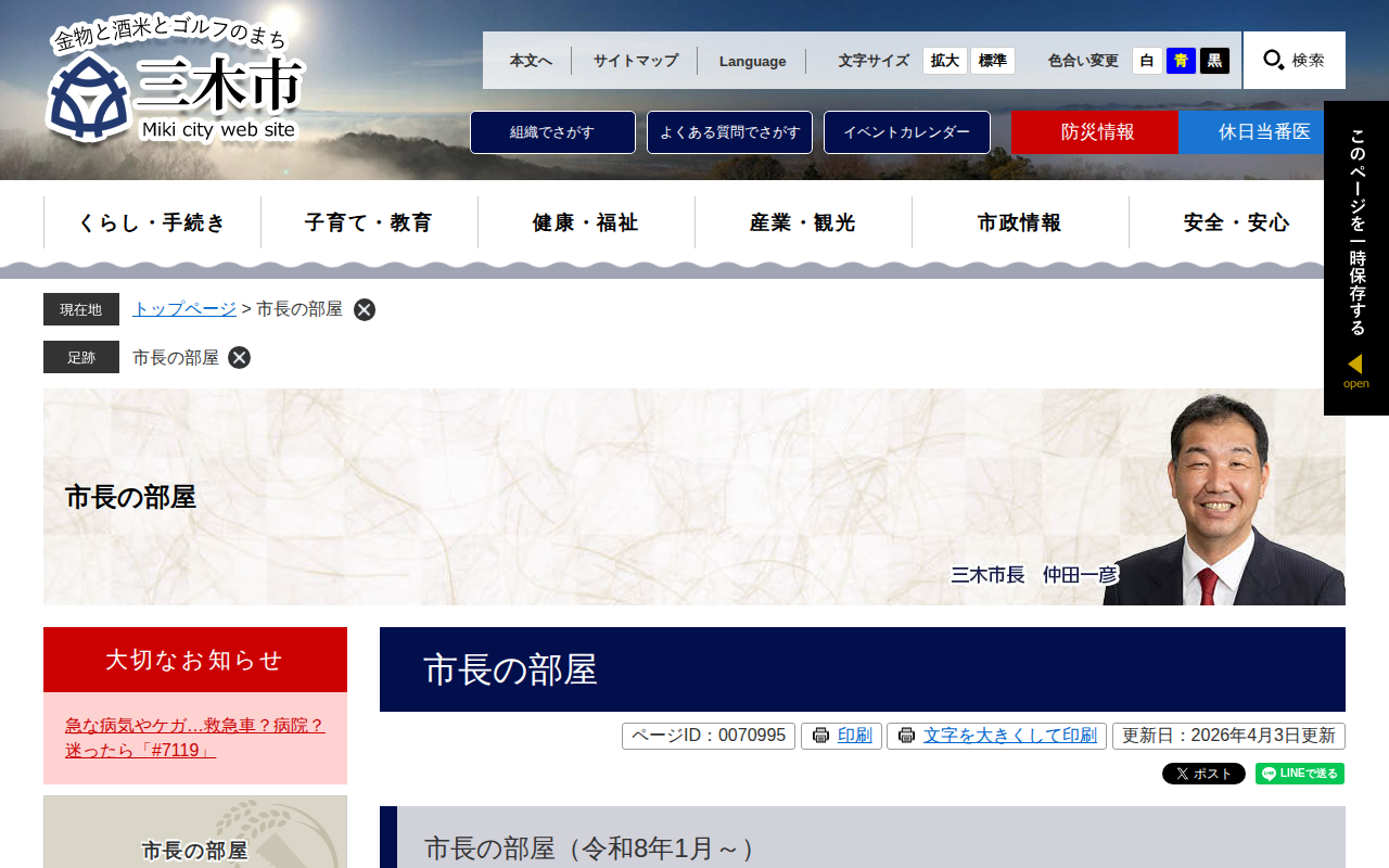 市長の部屋 - 三木市ホームページ - 保存されたスクリーンショット