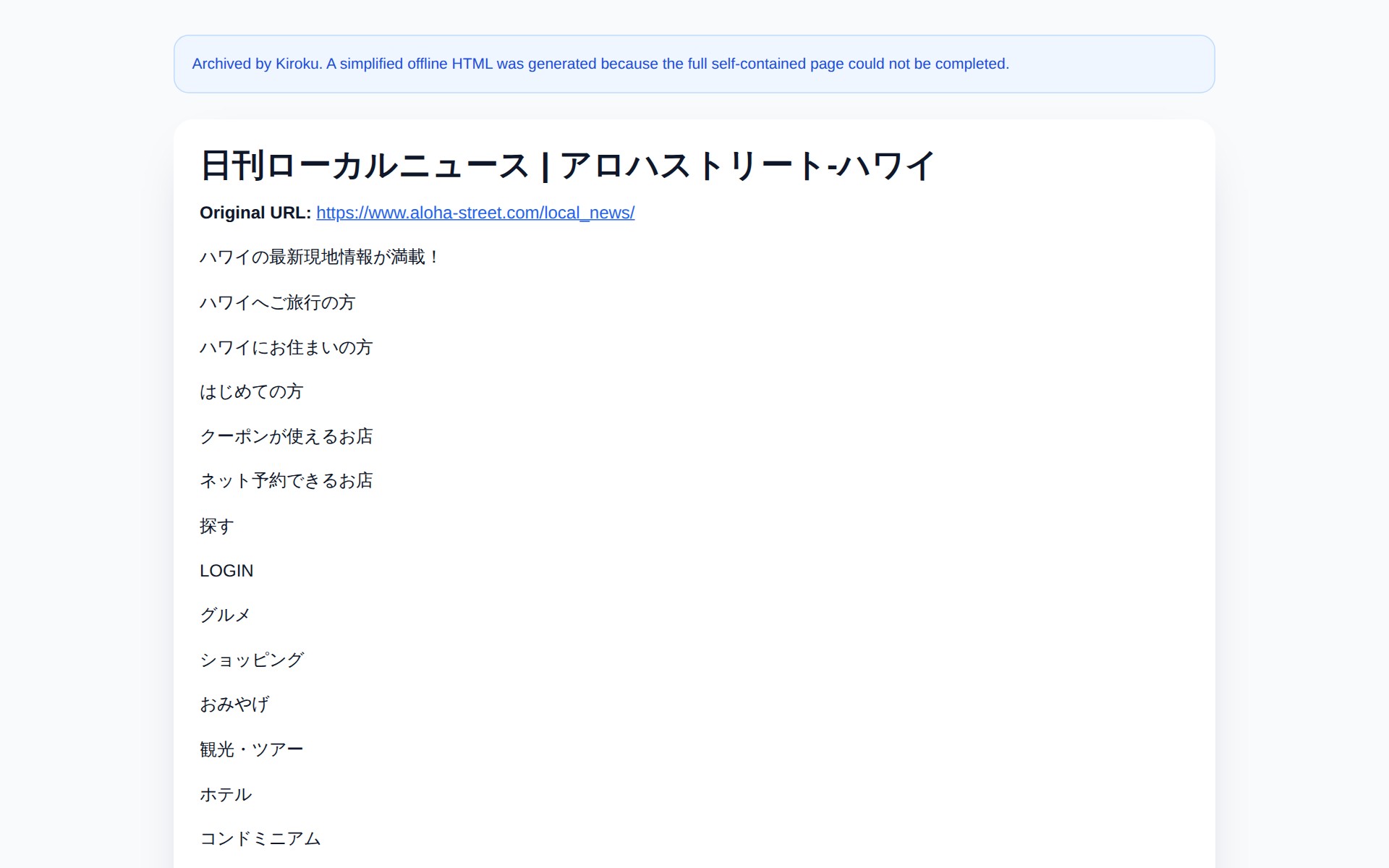 専用ビューでは、保存日時と元URLを上部に表示したままアーカイブHTMLを確認できます。
