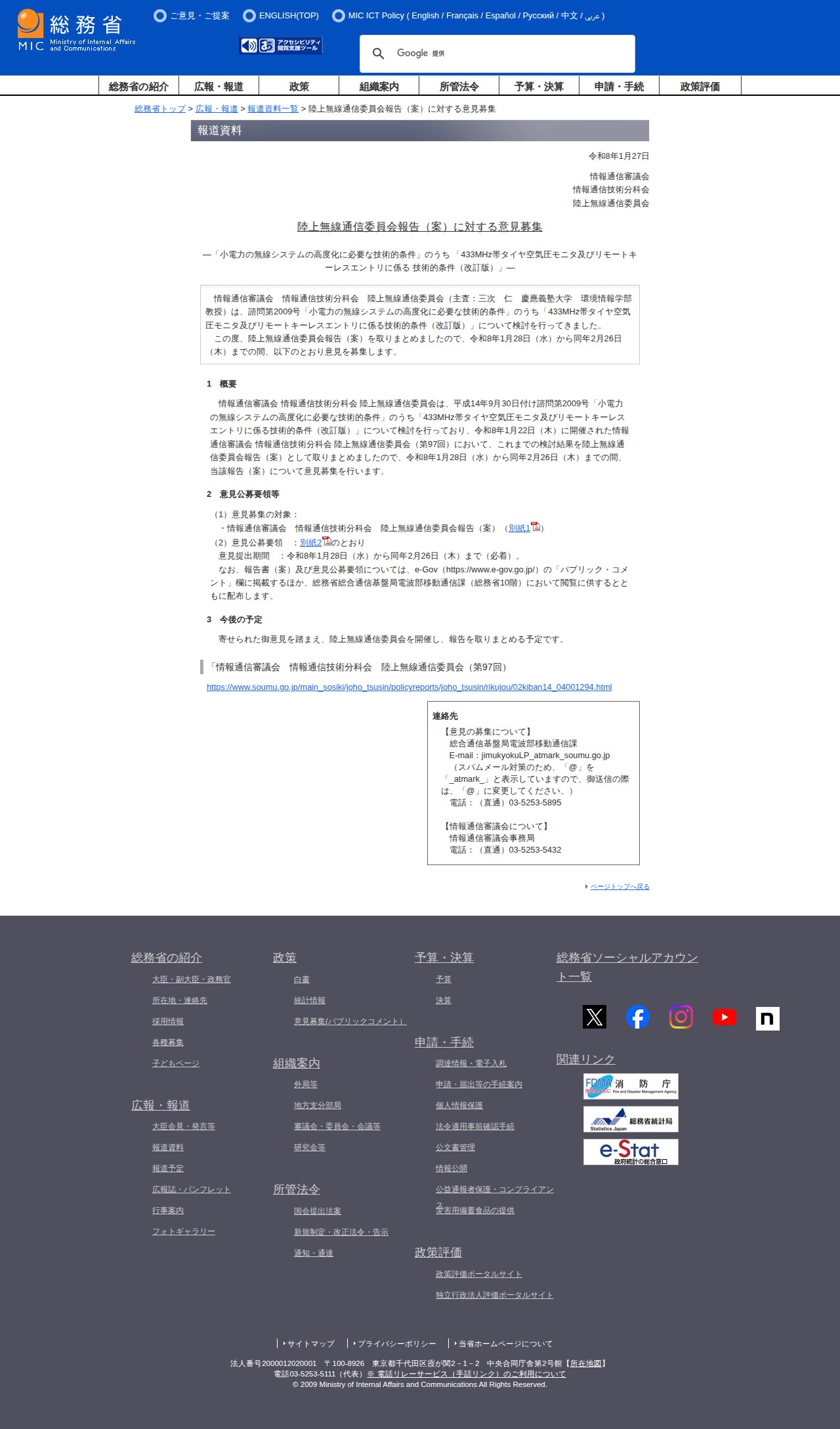 総務省|報道資料|陸上無線通信委員会報告(案)に対する意見募集