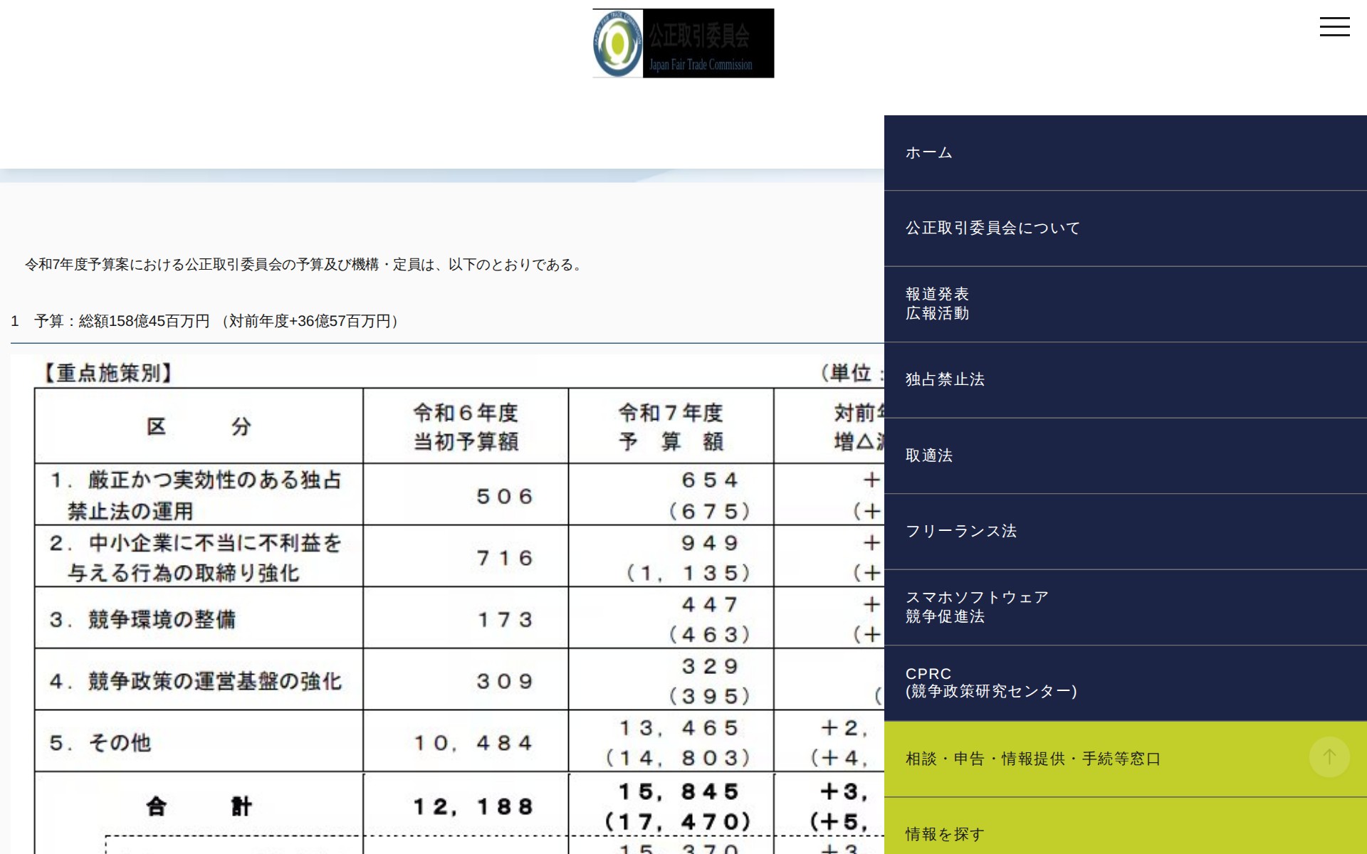 (令和6年12月27日)令和7年度公正取引委員会予算等の概要 | 公正取引委員会