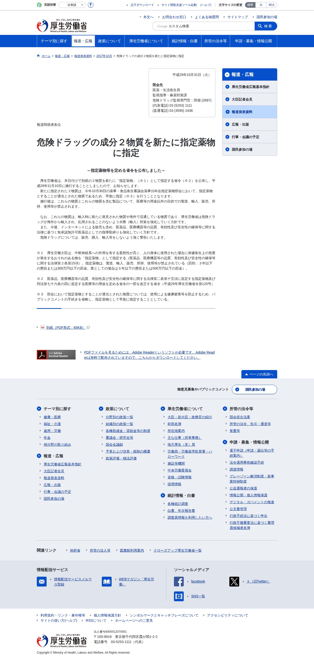 危険ドラッグの成分2物質を新たに指定薬物に指定|厚生労働省