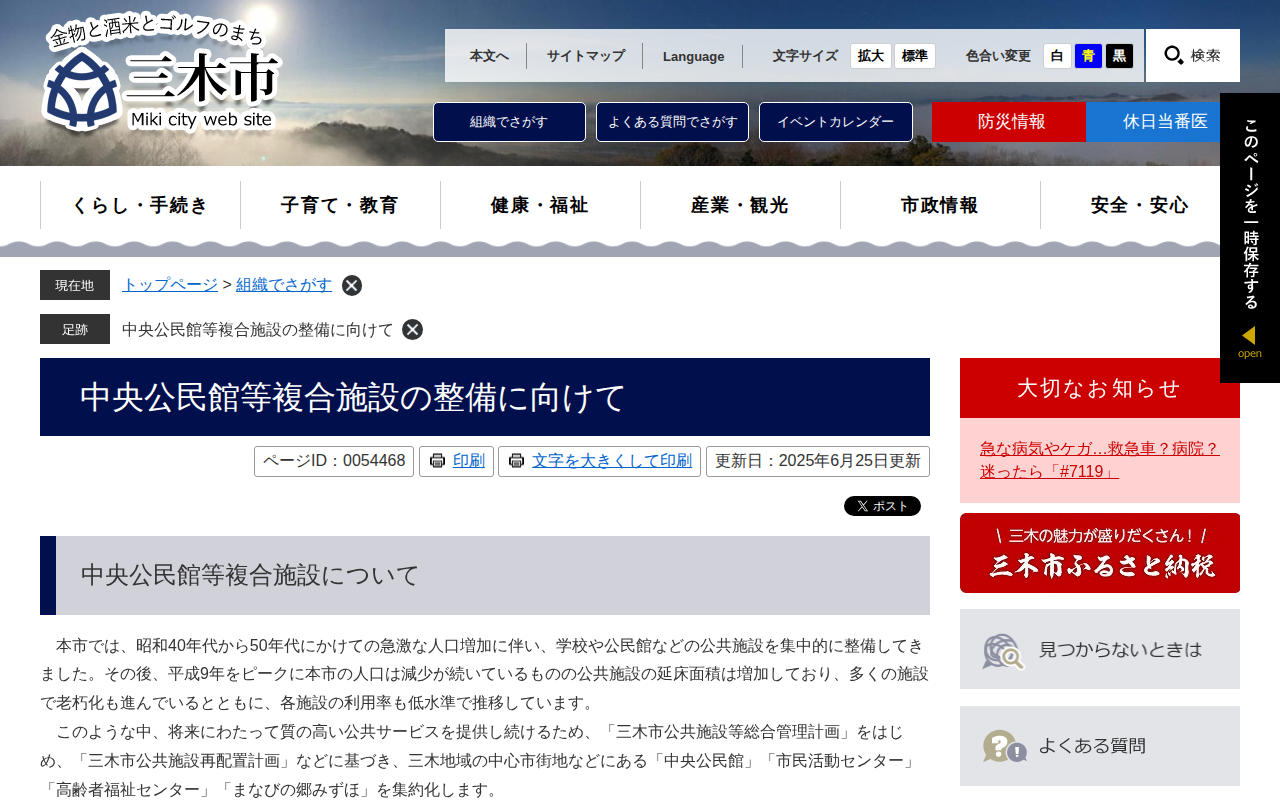 中央公民館等複合施設の整備に向けて - 三木市ホームページ - 保存されたスクリーンショット