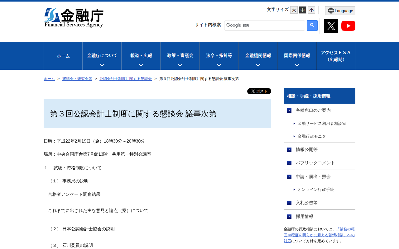 第3回公認会計士制度に関する懇談会 議事次第:金融庁 - 保存されたスクリーンショット