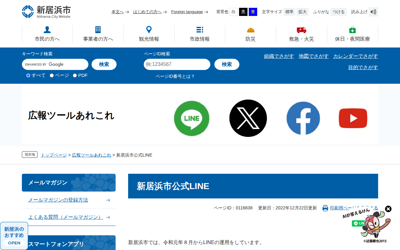 https://www.city.niihama.lg.jp/site/kouhoutool/line.html2026年4月9日 05:13 JST•アーカイブページ・viewer・ダウンロードは、この保存版を基準に表示されます。