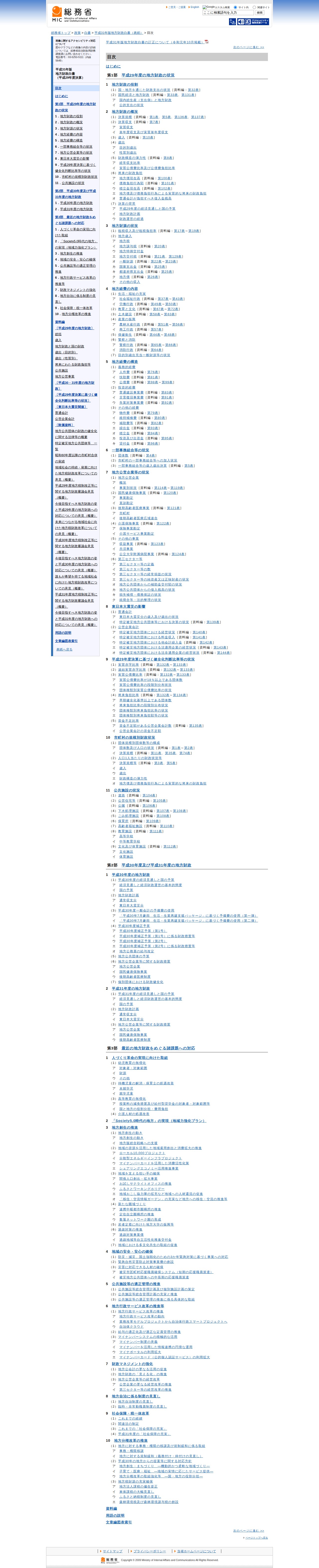 総務省|平成31年版 地方財政白書|目次
