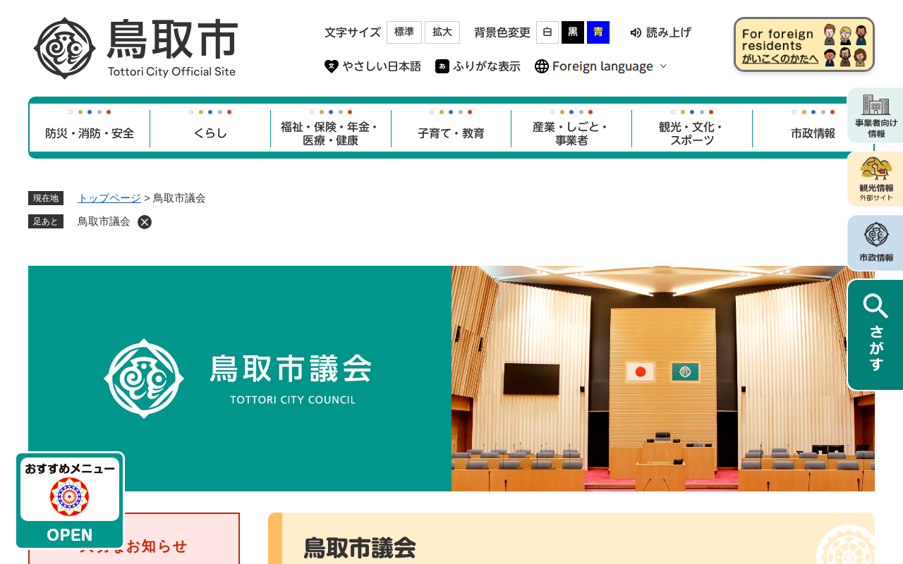 鳥取市議会 - 鳥取市公式ホームページ - 保存されたスクリーンショット