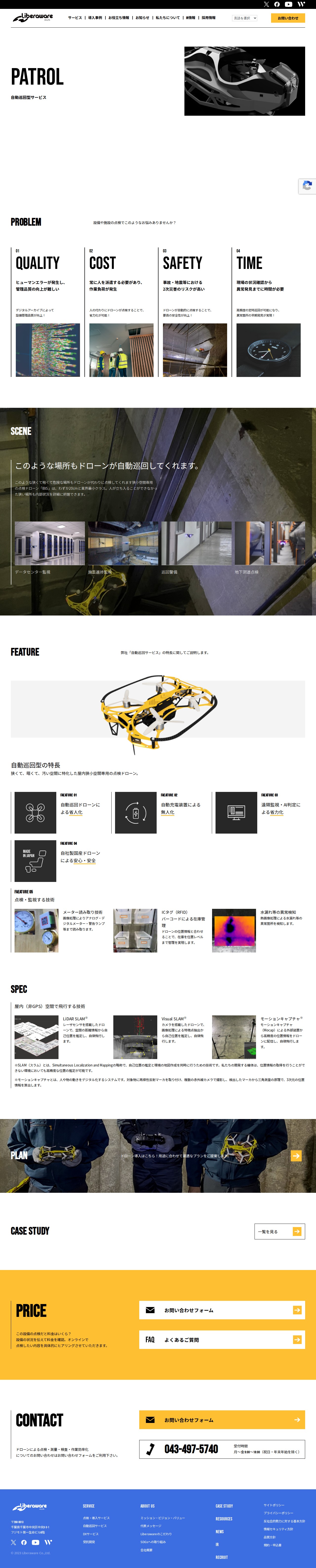 このページは、リベラウェアが提供する自動巡回型ドローンサービス「PATROL」について説明しています。設備・施設点検におけるヒューマンエラー、コスト、安全性、時間の課題を解決するサービスです。狭小空間専用ドローン「IBIS」を活用し、省人化・無人化・省力化を実現します。LiDAR SLAM等の自律飛行技術により、GPS非対応の屋内でも自動巡回が可能。メーター読み取り、異常検知などの機能を備えており、データセンター監視や地下洞道点検など多様な用途に対応しています。