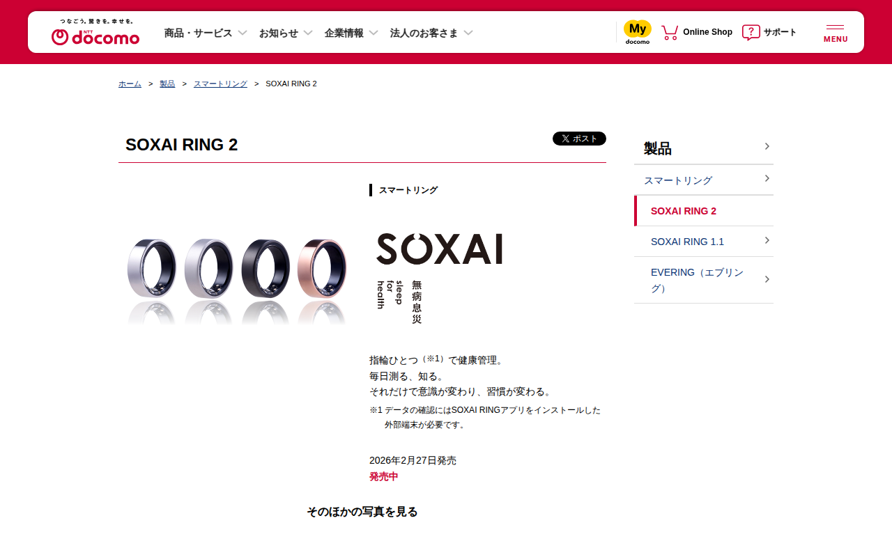 SOXAI RING 2 | スマートリング | 製品 | NTTドコモ - 保存されたスクリーンショット