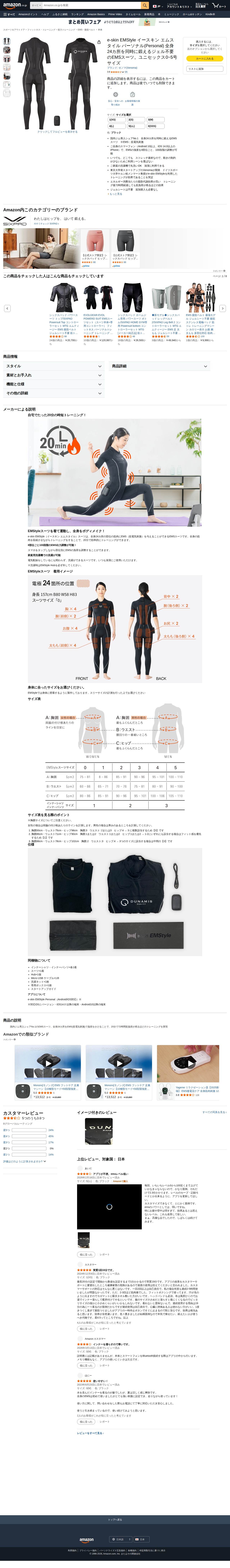 Amazon.co.jp: e-skin EMStyle イースキン エムスタイル パーソナル(Personal) 全身24カ所を同時に鍛えるジェル不要のEMSスーツ。ユニセックス0~5号サイズ : スポーツ&アウトドア - 保存されたスクリーンショット
